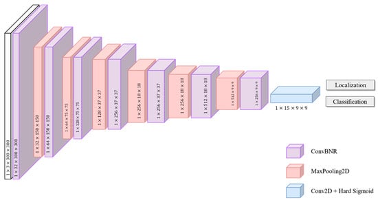 The proposed FL module is designed to conduct cost-efficient training and inference operations under low-end computing resources without GPU. Object detection, which involves the identification of the location and class of objects within an image, has gained significant attention from both academics and industry due to its wide range of applications. In general, a Convolutional Neural Network (CNN)-based model, such as Region-based CNN (RCNN) [], You-Only-Look-Once (YOLO) [], Single Shot Detector (SSD) [], and Residual Neural Network (ResNet), is used for object detection []. The proposed model adopts the network architecture shown in Figure 2 for cost-effective object recognition.
