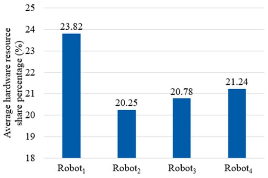 Average hardware resource share percentage of articulated robots over 30 iterations.
