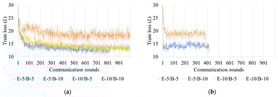 Figure 11 illustrates the number of communication rounds (rounds) of FL required for the global model to achieve 80% object recognition accuracy within 1000 rounds of model training. In particular, the train loss (L) of client models is measured according to Equation (7).