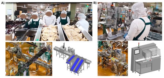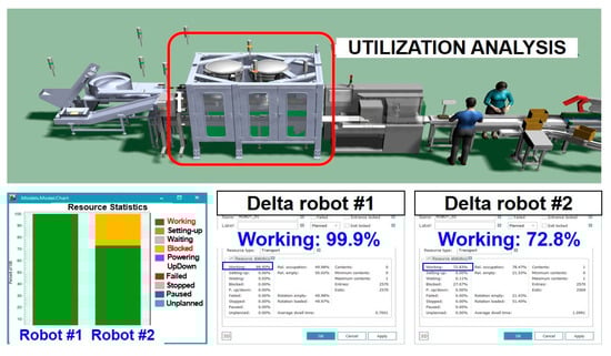 - Srasrisom, K.; Srinoi, P.; Chaijit, S.; Wiwatwongwana, F. Improvement of an Automated CAN Packaging System Based on Modeling and Analysis Approach through Robot Simulation Tools. Int. J. Robot. Autom. 2020, 9, 178–189. [Google Scholar] [CrossRef]