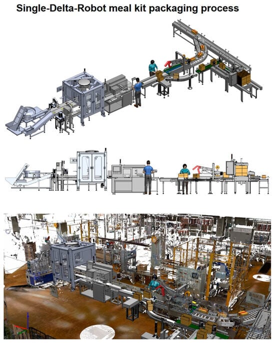 Application of Delta Robot to Novel, Hybrid 3D Simulation of the Assembly Line for Robot Automation Packaging of Meal Kits