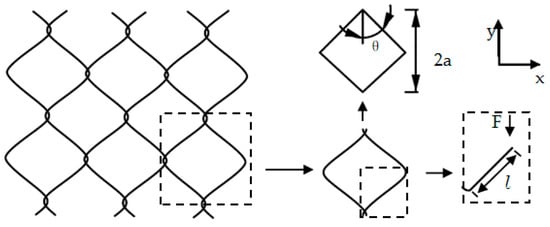 Geometry and force diagram of metal mesh (2a: Mesh width; l: Mesh side length).
