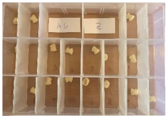 Crowns were glazed separately using Zirkonzahn glaze paste and the oven P500 (Ivoclar Vivadent, Shaan, Liechtenstein) (Figure 9 and Figure 10). Finally, restorations were numerically ordered from 1 to 10 (Figure 11).