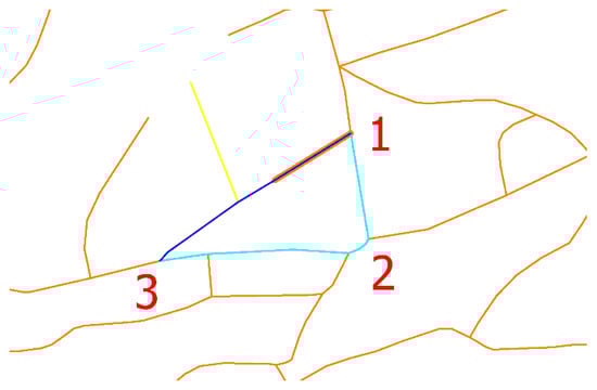 In addition to established connections within the built environment and elementary parts of the network, understanding the topology of the network itself is necessary to determine minimal paths. Topology depends on the organization of urban units, indirectly defining densities of origins and destinations [,]. According to this arrangement, determining even a single path represents the initial step toward forming a matrix of possible movements.