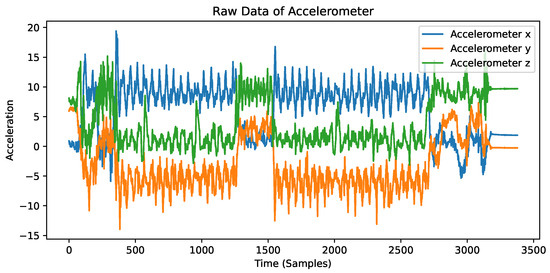 As shown in Figure 2, the raw accelerometer data exhibit significant noise and variability. This noise can be attributed to various factors, including sensor drift, environmental disturbances, and sensor inaccuracies. To address these challenges, we employed a series of preprocessing steps to improve the quality of our sensor data. In this study, we conducted the following preprocessing steps: