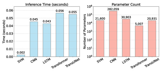 A critical contribution of our study is the comprehensive evaluation of computational efficiency—particularly relevant for resource-constrained IoT applications. Figure 11 presents a detailed comparison of the inference time and parameter count across all models.