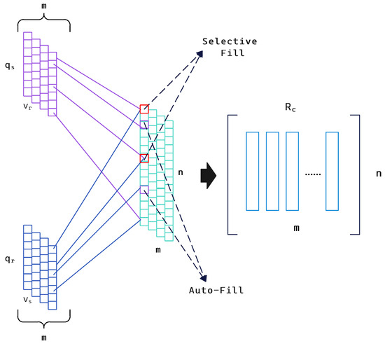 - Selective Fill: If the user u has rated and commented on the item i, then a Drop judgment will be made first. If neither the user nor the item is deleted, ⊕ will be filled using a fixed weighted linear function .
