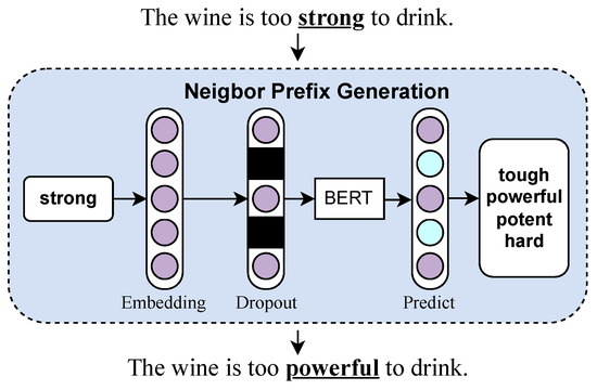 Neighbor Prefix Generation Model: When generating the neighbor prefixes of the samples to be judged, we use the BERT model [48]. With its powerful context encoding ability, the BERT model can generate similar prefixes for each sample, ensuring both semantic similarity and contextual consistency. Compared to other solutions, such as Con2vec [49], T5 [50], and GPT, BERT maintains a balance between efficiency, contextual synonym generation, and computational cost, making it a suitable choice for our approach. The key hyperparameters are set as follows: the dropout rate, set at 30%, which controls the probability of zeroing dimensions during embedding perturbation; the prefix proportion, set at 20%, which determines the size of the prefix relative to the entire target sample; the number of neighbors generated, which is typically five per target sample; and the number of replacements, which refers to the number of masked words substituted per target sample and is set to one.