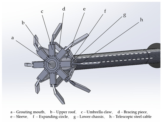 Hollow grouting expansion structure diagram of umbrella-shaped expansion head.