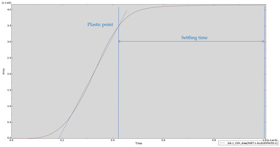 Figure 21 further quantifies the influence of the expansive body section on the soil through the form of a curve, which is embodied in the relationship between the yield area of the soil and the time. The curve reveals the dynamic evolution process of soil yield area under the action of the expansive body section. The slope of the curve reflects the rate of soil yield development, and the overall trend of the curve shows the changing rule of soil yield area with time.