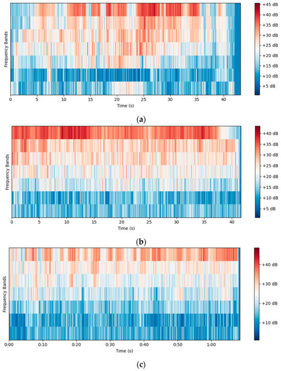 Spectral contrast processing results of three music categories. (a) Empathetic perspective-taking. (b) Outlook. (c) Problem-solving.