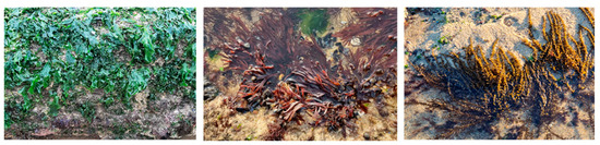 - Pereira, L. Guia Ilustrado Das Macroalgas: Conhecer e Reconhecer Algumas Espécies Da Flora Portuguesa; Imprensa da Universidade de Coimbra: Coimbra, Portugal, 2009. [Google Scholar]