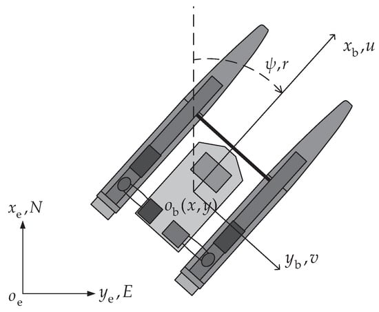 Considering the horizontal motions of a USV, namely, surge, sway, and yaw motions, while neglecting roll, pitch, and heave motions, a simplified three degree of freedom vectorial model for a USV can be expressed as [15]: