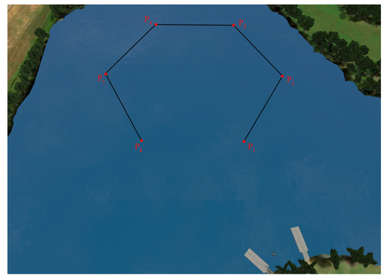 As shown in Figure 4, set as the planned waypoint sequence and adopt a straight segment and acceptance circle switching mechanism—that is, when the vessel enters the acceptance circle, it switches to the next straight segment. The switching condition is the following: