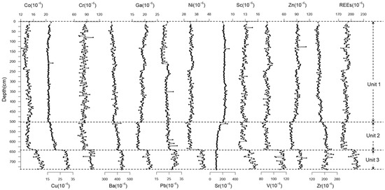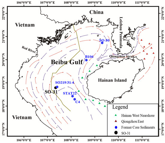 - Cui, Z.; Schulz-Bull, E.; Hou, Y.; Xia, Z.; Waniek, J. Geochemical Characteristics and Provenance of Holocene Sediments (Core STAT22) in the Beibu Gulf, South China Sea. J. Coastal Res. 2016, 32, 1105–1115. [Google Scholar] [CrossRef]
