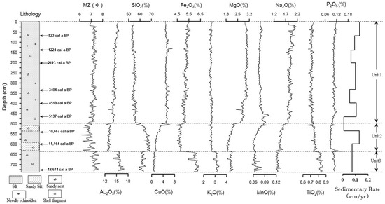 - Liang, D.Y.; Wu, S.Z.; Xu, G.Q.; Xia, C.J.; Gao, F.L.; Lin, Y.H.; Jia, L.Y. Paleoenvironmental changes in the coastal zone of the northwest South China Sea during the last 13 kyr. Sci. Rep. 2023, 13, 13540. [Google Scholar] [CrossRef]