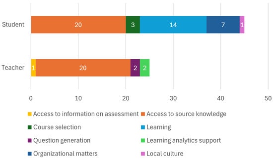 - Question generation—chatbots whose sole purpose is to support the teachers in developing questions about which they will ask the students;