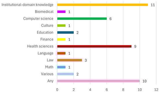 - Institutional-domain knowledge—chatbots focused on the knowledge about a given institution, including its policies and procedures, regardless of its field(s) of education.