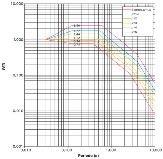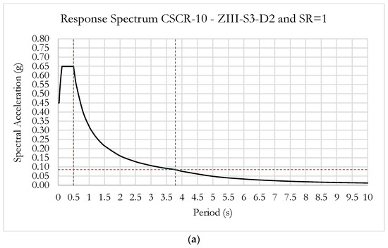 The country has developed its own seismic code, known as the Costa Rican Seismic Code (CSCR-10 Rev. 2014—CFIA, 2010) [64], which has been in effect since 1974. Chapter 5 of the CSCR-10 outlines the procedure for calculating the seismic coefficient (), which defines the horizontal seismic demand and corresponds to the spectral design acceleration for given levels of ductility and damping. The seismic coefficient is computed using the following equation [64]: