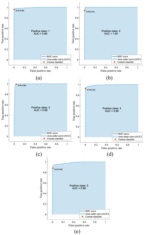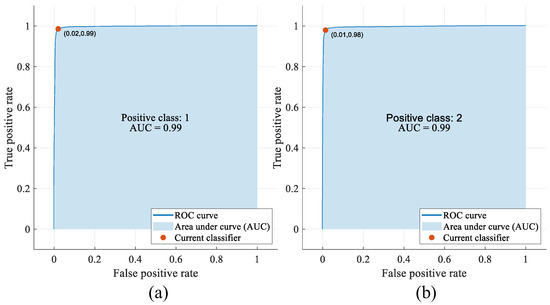 The computer used in the experimental studies has a 4 GB graphics card, i7 intel 5500U processor (Intel, Santa Clara, CA, USA), and 16 GB RAM, and the MATLAB 2021a program was installed on Windows 11 and used to code the suggested technique. Training the suggested Parallel Attention–Residual CNN (PARC) model was carried out for multi-class and binary classification at the first step of the suggested methodology. The epoch value was chosen as 100 to achieve maximum performance. This ensured sufficient training iterations. The mini-batch size was chosen as 32. This was the maximum allowed by the hardware for the PARC model used. The initial learning rate was chosen as 0.001. For smaller values, the training time increased and for larger values, the classification performance decreased. The SGDM technique was used as the optimization solver. The validation method employed was the 10-fold cross-validation, and the loss function was the cross-entropy. It took around 2 h to train the PARC model with the available hardware.