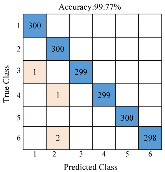 The loss values and accuracy graphics during optimization are presented in Figure 7 and Figure 8. The training–validation accuracy scores for the binary classification reached 100% and 95.38%, and the training–validation loss values reached 0.035 and 0.1, respectively. The training–validation accuracy scores for the multi-class classification reached 99.21% and 91.89%, and the training–validation loss values reached 0.15 and 0.12, respectively.