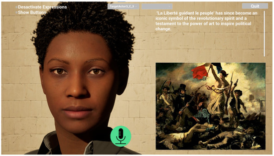 Figure 3 shows the user interface of the dialogue system. The ECA is displayed on the left side, and the artwork is on the right. The user talks with the ECA while looking at the artwork. An example conversation video is provided as Supplementary Materials (Video S1).