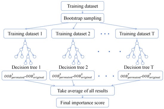where T denotes the total number of trees, and and represent the OOB error rates before and after variable permutation for the i-th tree, respectively.