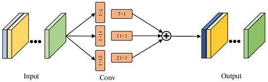 Spatial attention in the CGM draws inspiration from the calculation method of channel prior convolutional attention (CPCA) [43]. It employs a dynamic allocation method and replaces the convolution kernel with strip convolutions, rendering it more appropriate for strip images like transmission lines. Unlike channel attention, spatial attention does not aggregate feature maps in a specific direction since it assigns identical spatial attention information to all channels. This ensures the preservation of distinctions between various channels. Attention is computed through strip convolutions using convolution kernels of different scales. Finally, spatial attention weight is derived through addition.