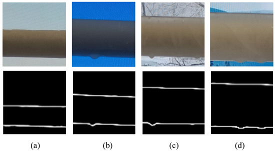 Upon detecting the edge of the ice-covered transmission line, the predicted ice thickness can be computed by analyzing the pixel difference between the upper and lower edges of the image. The ice-covered edge can be predicted by selecting four ice-covered transmission lines with varying thicknesses. Figure 8 illustrates the results of ice-covered edge prediction.