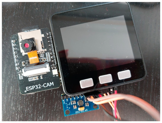 Figure 3 illustrates the custom-designed assembly for recording traffic events. It comprises an ESP32-CAM module manufactured by Espressif Systems in Shanghai, China, and an MPU-6050 sensor produced by InvenSense, a subsidiary of TDK, in Tokyo, Japan. These components work in tandem to capture and process real-time traffic incidents. The assembly is algorithmically managed using the Arduino IDE, enabling data acquisition.