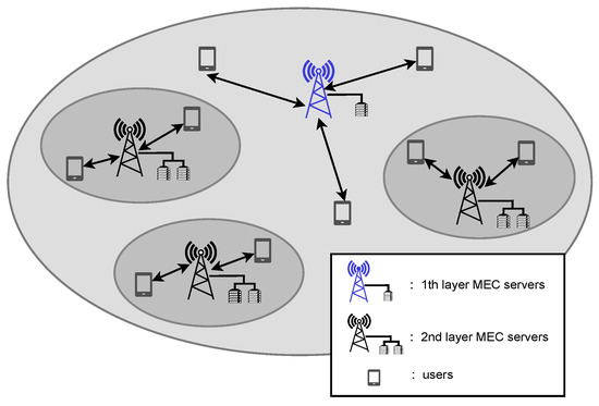 - Zhao, H.; Geng, J.; Jin, S. Performance research on a task offloading strategy in a two-tier edge structure-based MEC system. J. Supercomput. 2023, 79, 10139–10177. [Google Scholar] [CrossRef]
