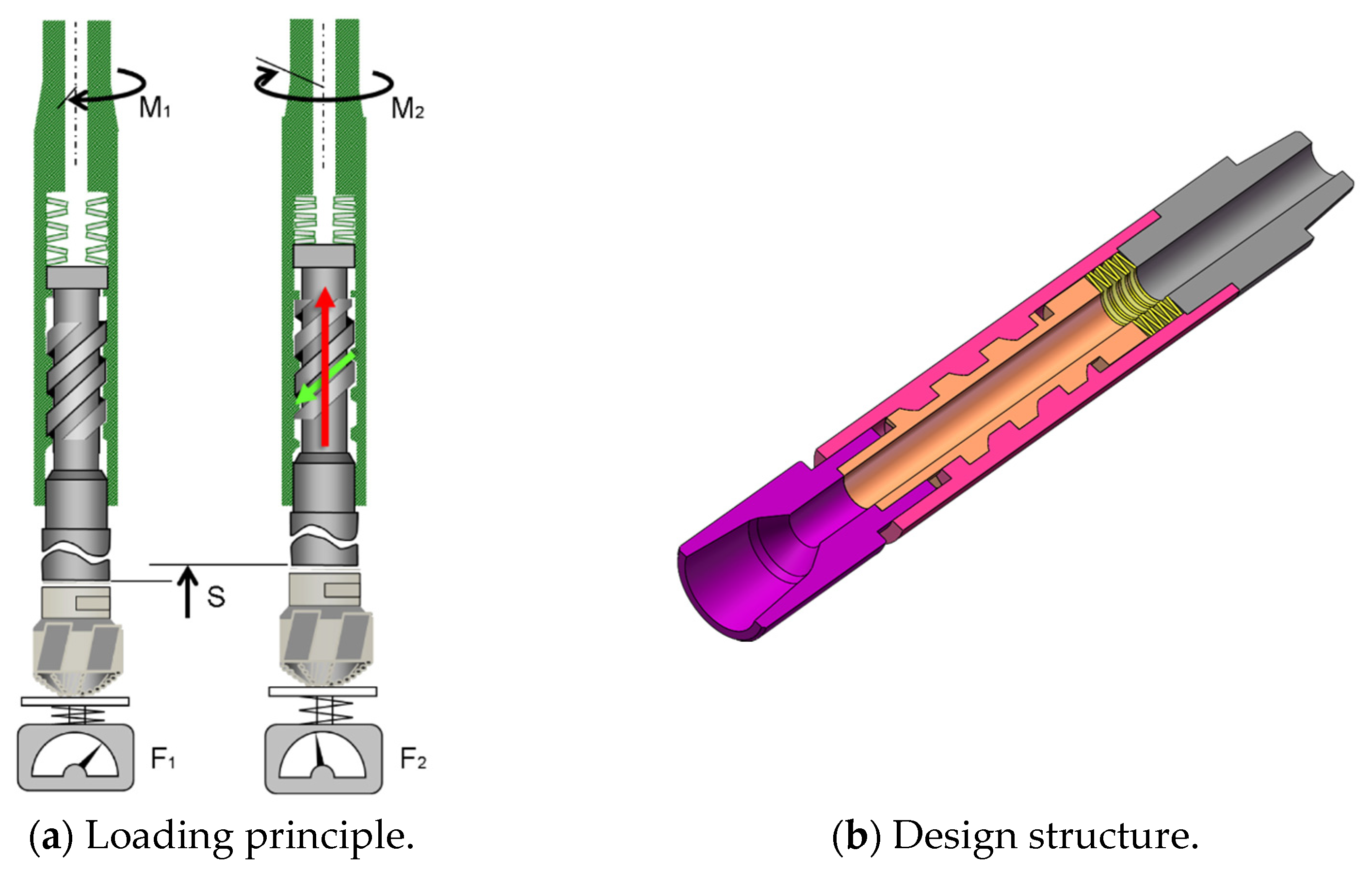 - Hu, H.; Guan, Z.; Wang, B.; Liang, D.; Sun, M.; Wang, X.; Chen, W. Weight-on-Bit Self-Adjusting Dual-Diameter Bit Leads a Step Change in Drilling Bit Technology. In Proceedings of the International Petroleum Technology Conference, Beijing, China, 26–28 March 2019; Society of Petroleum Engineers: Calgary, AB, Canada, 2019. [Google Scholar]