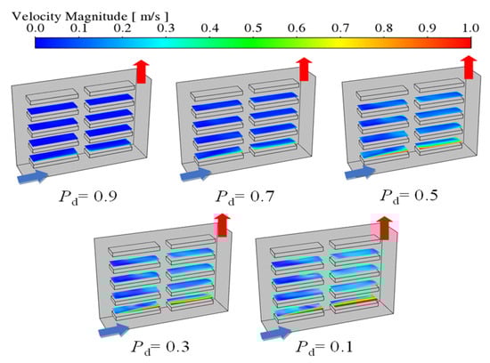 The velocity distribution of the airflow above the crop at each Pd at ACH = 80 h−1 is presented in two dimensions.