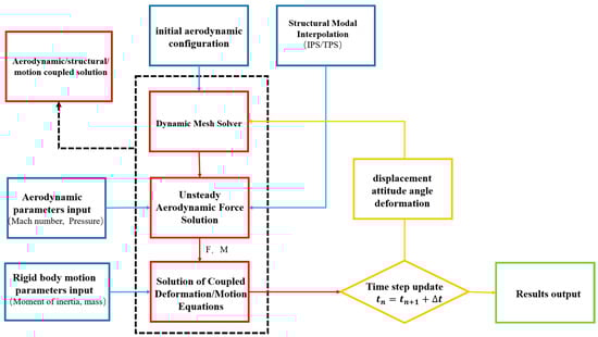 Section 2 details the flight dynamics model of aircraft and introduces an unsteady CFD solver, a mesh deformation strategy, and a simulation flowchart based on a rigid–flexible coupling model.