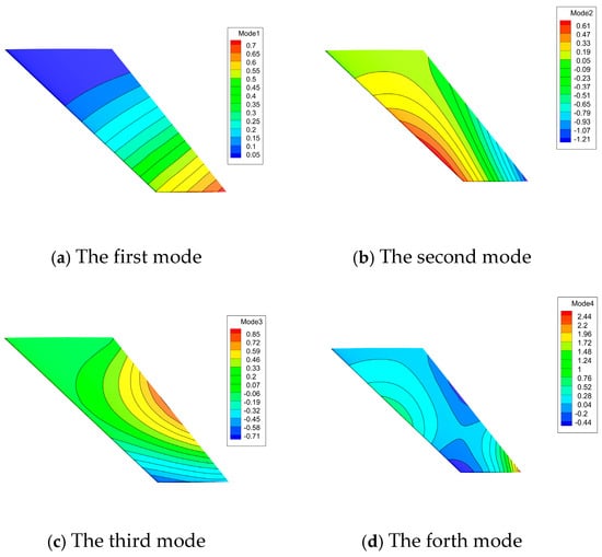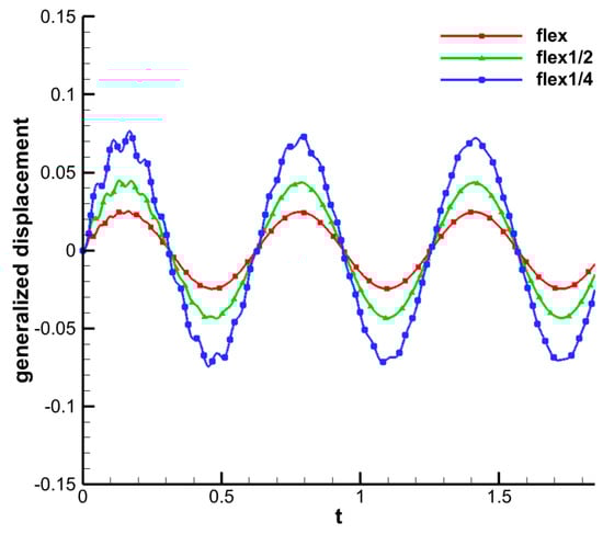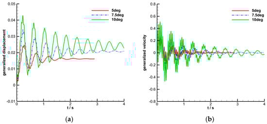 Figure 24 shows the comparison of the generalized displacement and the generalized velocity under different rudder deviations, and it can be seen that the generalized displacement increases with the rudder deflection angle, which means that the deformation increases, i.e., the additional moment generated.