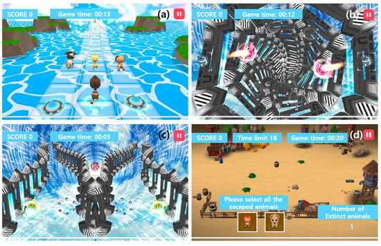 Therefore, adding a story to game-based content not only enhances the sense of challenge according to the difficulty level but also allows for behavioral adjustments through predictive exercises. The continuous motivation provided by the story-driven problem-solving approach can improve self-regulation abilities. This signifies the positive effect of reducing stress and resistance during the performance process [42]. The story-based game content presented in this study not only increases the child’s engagement but also allows for the introduction of various characters throughout the performance process, enabling diverse educational opportunities. Hence, future research on social behaviors that align with the learning objectives of story-driven content is required.