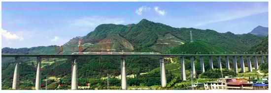With the continuous improvement in comprehensive national power, the construction layout of China’s high-speed railway (HSR) is becoming more and more complete. In order to save land and protect the environment around the railway lines, HSR mostly adopts the form of bridges instead of roads. In order to cross valleys and rivers, HSR adopts a large number of high-pier bridges as support structures of their lines during the design and construction process. The dynamic performance of the ballastless track will affect the dynamic response of the bridge, which will affect safety, and thus the smoothness of operating trains correspondingly. Moreover, the height of the pier affects the dynamic response indices of the train. Ensuring the safety of HSR bridges is a growing concern [1,2,3]. Meanwhile, finding a way to swiftly and precisely estimate structural deformation and dynamic response is critical for railway safety assessment, especially in bridge engineering, which accounts for the highest proportion of HSR infrastructure [4,5]. Vehicles traveling through the bridge, due to the weight of the vehicle itself and the vibration of the driving process, will have an impact on the bridge and thus the bridge’s structure by the impact of the role played by vibration. When the vibration amplitude and frequency of the bridge reach a certain limit, this affects the durability of the bridge structure and can even lead to the destruction of the bridge structure due to fatigue, resulting in casualties and property damage. When vehicles are on the bridge at the same time, the bridge road surface can become uneven, and the inherent vibration of the bridge itself will also exacerbate the vibration of the vehicle; this interaction between the vehicle and the bridge, mutual influence, is called the train–track–bridge coupled (TTBC) system by many researchers [6,7]. Therefore, understanding the coupled vibration of TTBC systems is of great value for the safe and smooth operation of HSR.