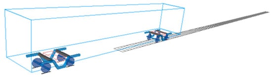 The car-body and bogies are connected by a secondary suspension system, while the wheel-set and the bogie are connected by a primary suspension system. When building the train model in this paper, the CRH2 train set is chosen as a reference. The model of a single locomotive set built in SIMPACK according to the relevant parameters of the vehicle is shown in Figure 11.