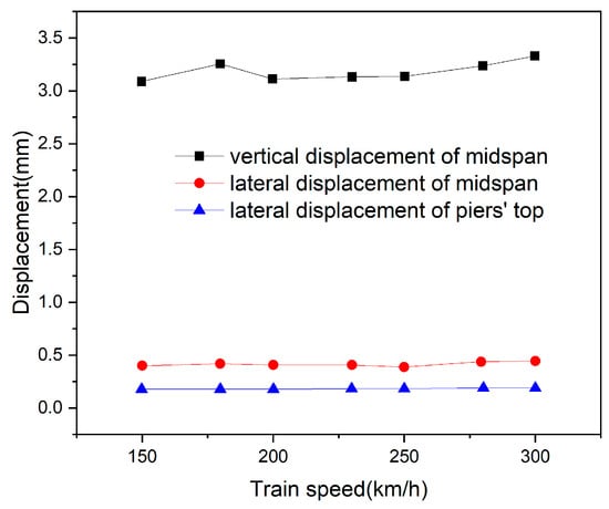 Relationship between the displacement of bridge and train speed.