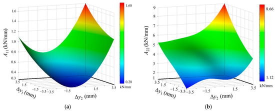 Based on the concept of BLINs [8,27], in the initial installation state, considering the supporting foundation as rigid (fixed without deformation) and elastic (supported by elastic boundary conditions), respectively, the rigid BLINs matrix and the elastic BLINs matrix were calculated (unit: kN/mm).