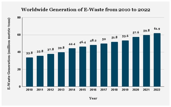 - Global E-Waste Generation 2010–2022|Statista. Statista. Available online: https://www.statista.com/statistics/499891/projection-ewaste-generation-worldwide/ (accessed on 5 January 2025).