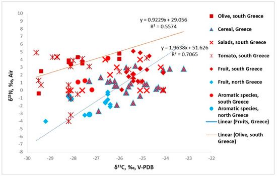 - Šturm, M.; Lojen, S. Nitrogen isotopic signature of vegetables from the Slovenian market and its suitability as an indicator of organic production. Isot. Environ. Health Stud. 2011, 47, 214–220. [Google Scholar] [CrossRef]