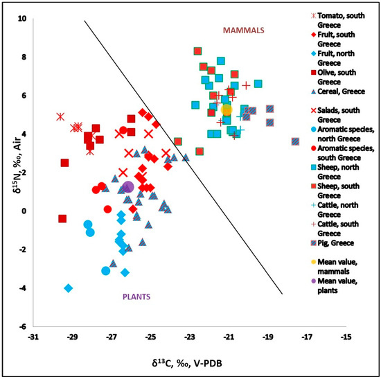- Dotsika, E.; Diamantopoulos, G. Influence of Climate on Stable Nitrogen Isotopic Values of Contemporary Greek Samples: Implications for Isotopic Studies of Human Remains from Neolithic to Late Bronze Age Greece. Geosciences 2019, 9, 217. [Google Scholar] [CrossRef]