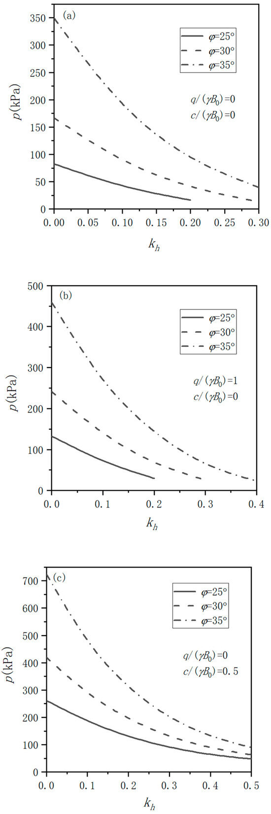(4) The seismic bearing capacity is positively correlated with the initial cohesion and the non-uniformity coefficient, and the non-uniformity of the soils has a significant effect on the seismic bearing capacity.