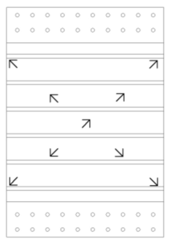 As for the placement direction of the corrugated steel plate, in addition to conventional horizontal and vertical placement, Liang Zheng [6] also studied five different waveform placement angles of 0°, 30°, 45°, 60°, and 90°. However, the actual construction cost and difficulty of placing the corrugated steel plate diagonally are larger than for those placed conventionally. In addition, the procedure of bolt connection setting of a vertically placed corrugated steel plate is more complicated. Combined with the influence of non-gravity load, the layout direction of the corrugated inner-filled steel plate has little influence on the seismic performance of the specimen, so the horizontal placement direction of the corrugated steel plate was chosen.