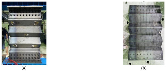 - TCSPSW-M-1: Trapezoidal corrugated plate (wave height = 75 mm, wavelength = 350 mm, Figure 1b).