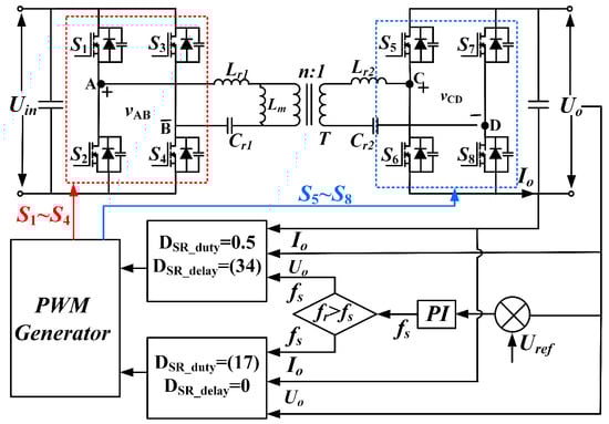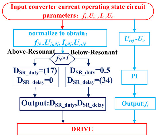 Therefore, the synchronous rectification signal only requires sampling the input voltage, output voltage, and output current, eliminating the need for additional sampling circuits. This enables the dynamic real-time synchronization of the circuit state. The flowchart of the proposed synchronous rectification scheme for the CLLC resonant converter is illustrated in Figure 9. The CLLC resonant converter employs closed-loop control based on the voltage difference, and the control block diagram is presented in Figure 10.