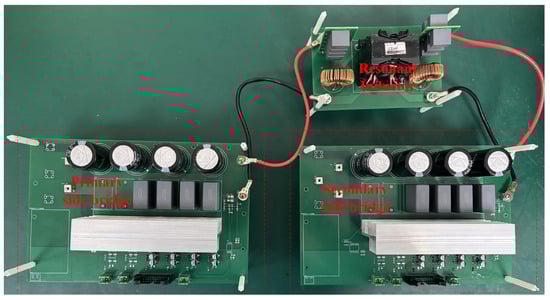 To verify the feasibility of the proposed synchronous rectification scheme for the CLLC resonant converter, an 800 W experimental prototype was constructed. The experimental setup is illustrated in Figure 13, with the topology identical to that shown in Figure 1. The parameters of the experimental prototype are detailed in Table 2.