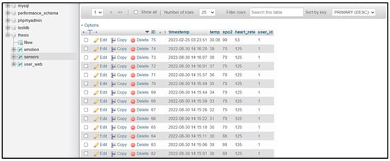 Example of data stored in the MySQL database.