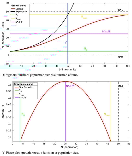 as the carrying capacity [5]. The analytical solution to the logistic equation (Figure 1a) is the sigmoid function